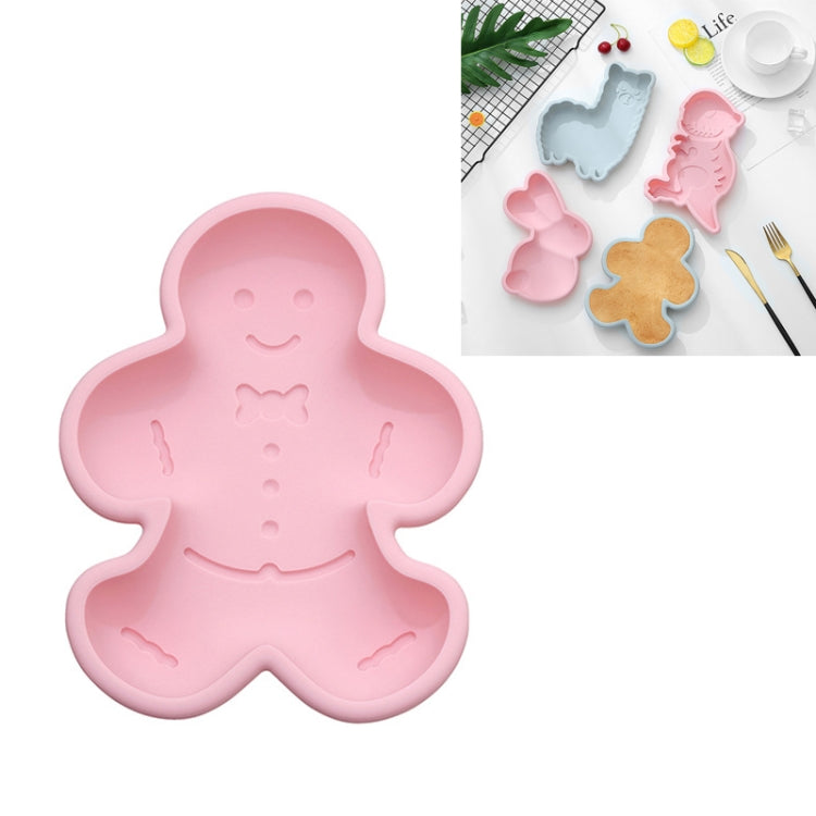 6 PCS Cartoon Animal Shape Silicone Non-cut high Temperature Baking Cake Mold, Style:Gingerbread Man(Pink)