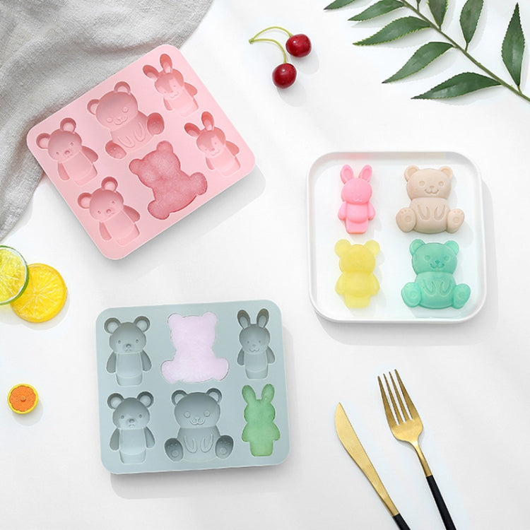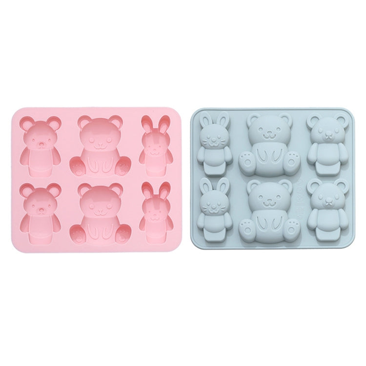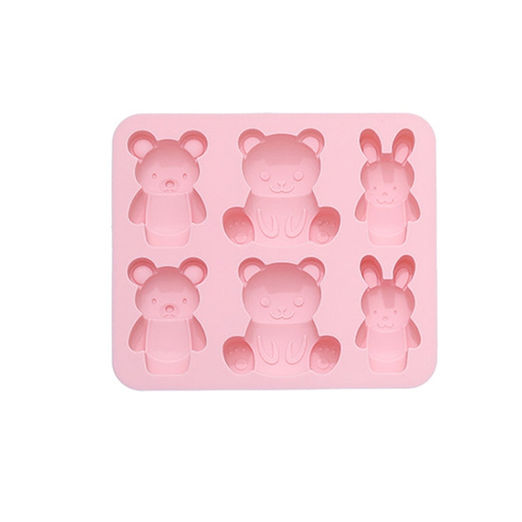 6 PCS Cute Cartoon Animal Shape Silicone Chocolate Mold Baking Cake Mold Ice Tray(Pink)