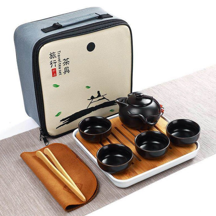 8 in 1 Ceramic Tea Set Penguin Kung Fu Teapot 1 Pot 4 Teacups 1 Tray Holder Chinese Drinkware with High-end Gift Box (Black)
