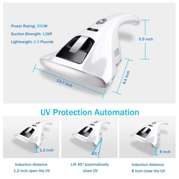Anti-Dust Mites UV Vacuum Cleaner Household Handheld UV Vacuum Cleaner,Anti-Bacterial Portable with Hight Efficiency, Plug:US Plug(White)