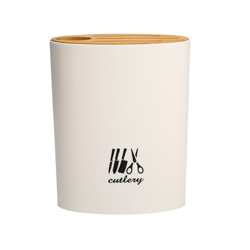 Bamboo Cover Knife Storage Rack Kitchen Multi-Function Rack Oval Large (White)
