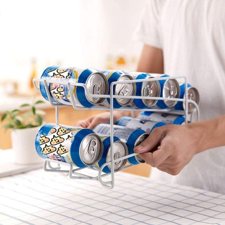 Cans Rolling Storage Rack Beer Coke Double Rack Refrigerator Shelf(Black)