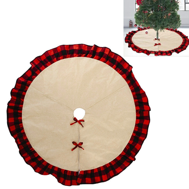 Christmas Decoration Products Plaid Cloth Edging Linen Tree Skirt Christmas Tree Bottom Apron(Red and Black Plaid Trim)