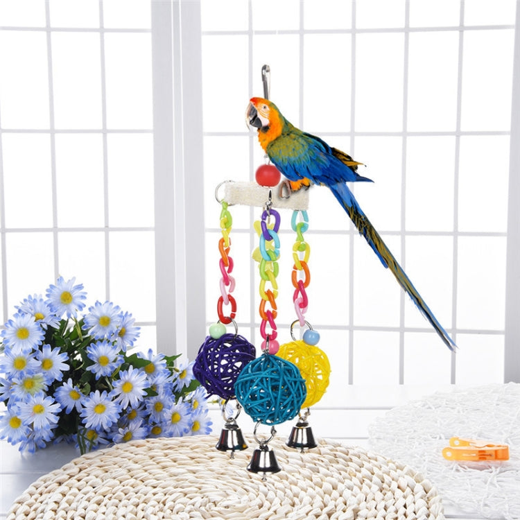 Creative Wooden Parrot Rattan Ball String Swing Bite Toy