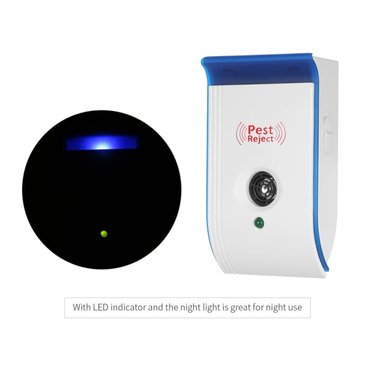 CT-2033 Electronic Ultrasonic Mosquito Pest Repeller with Night Light, Plug Type:US Plug(Blue)