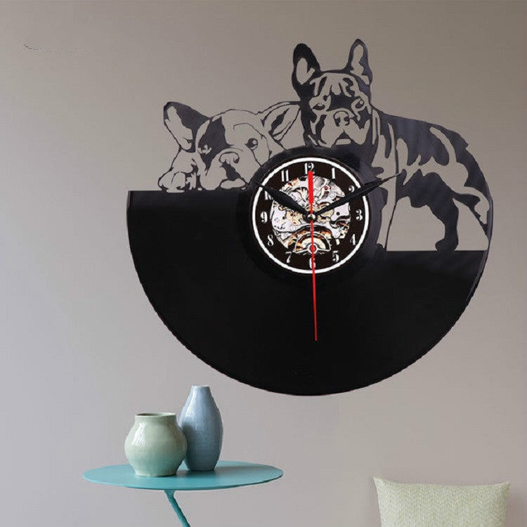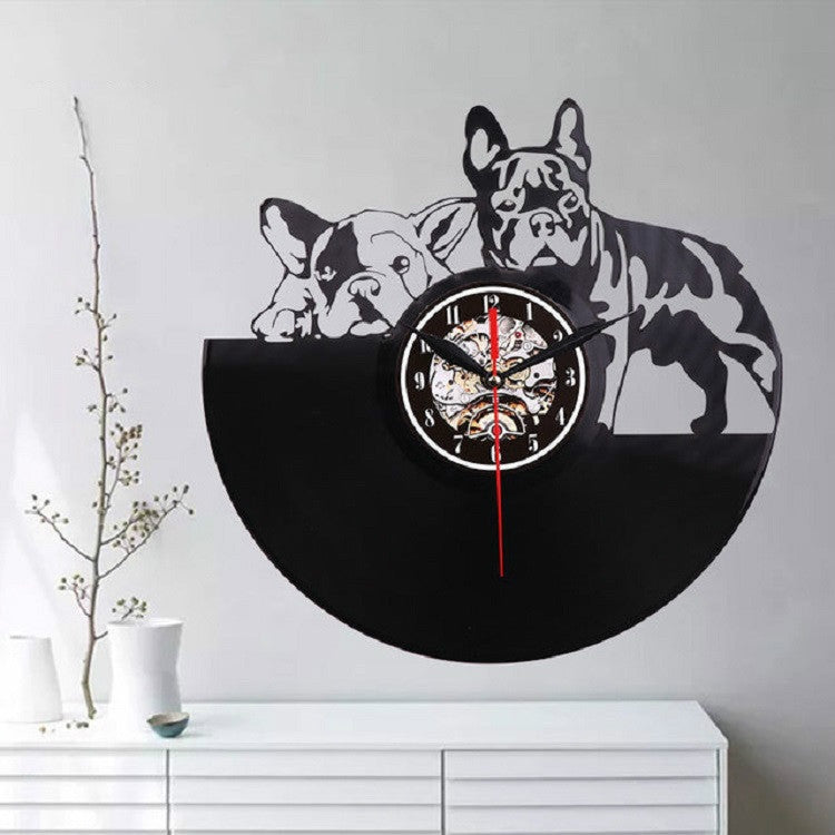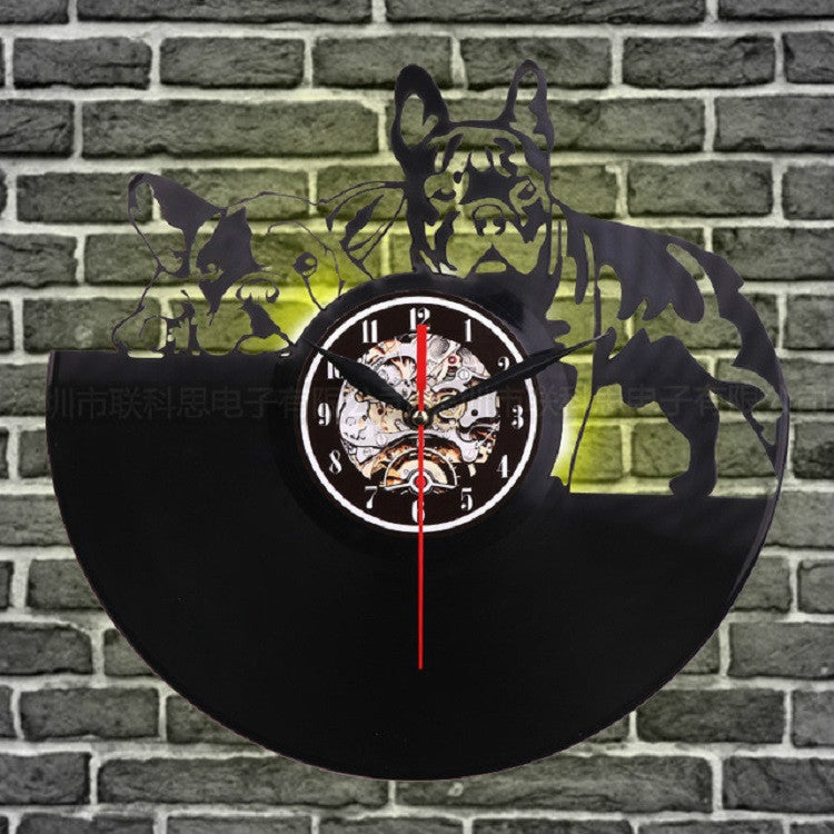 European Retro Living Room Decoration Vinyl Record Dog Wall Clock Wall Lamp Light Control