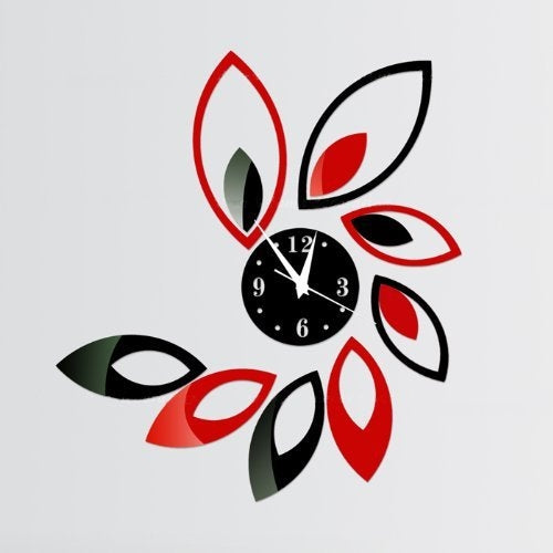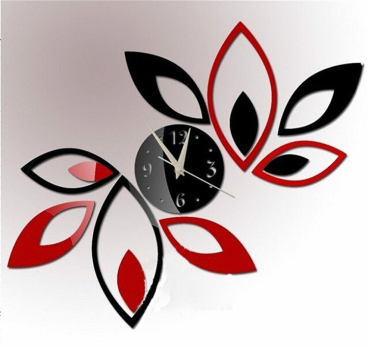 Flower Art Modern Design DIY Removable 3D Crystal Mirror Wall Clock Wall Sticker Living Room Bedroom Decor(Red+Black)