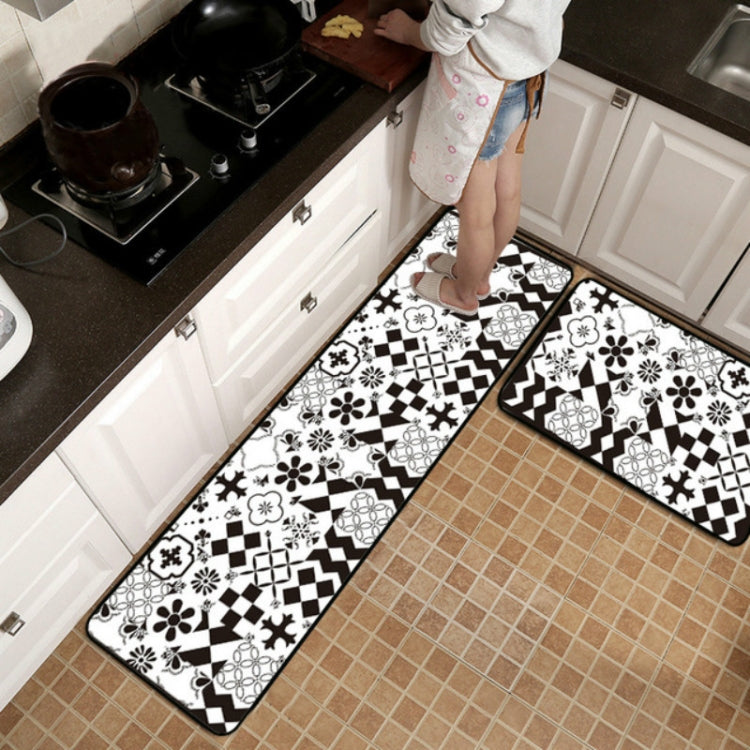 Geometric Lattice Carpet Kitchen Bath Antiskid Mat, Size:40x60cm + 40x120cm(Black White Flower)