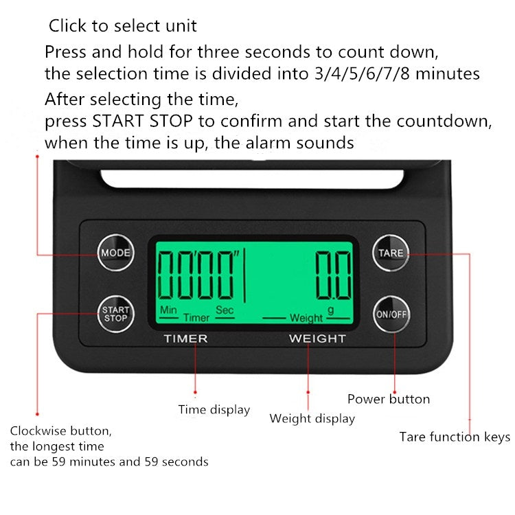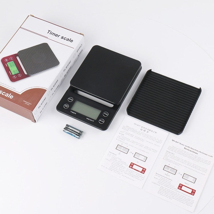 Hand Punch Coffee Scales Timing Electronic Timer Scale Kitchen Scales, Model:5kg/0.1g(Black)