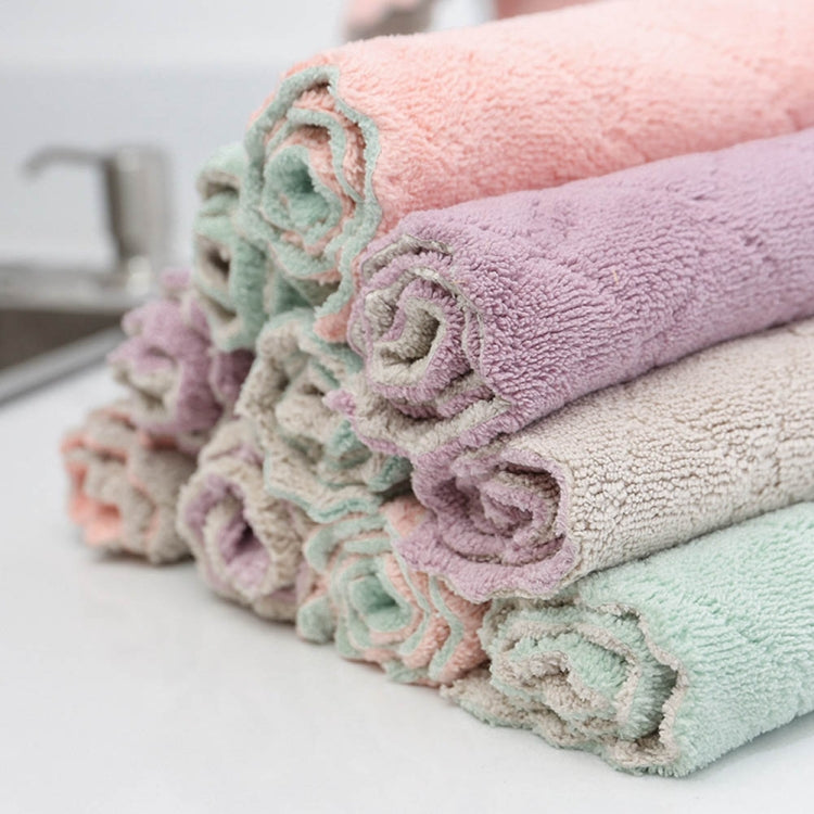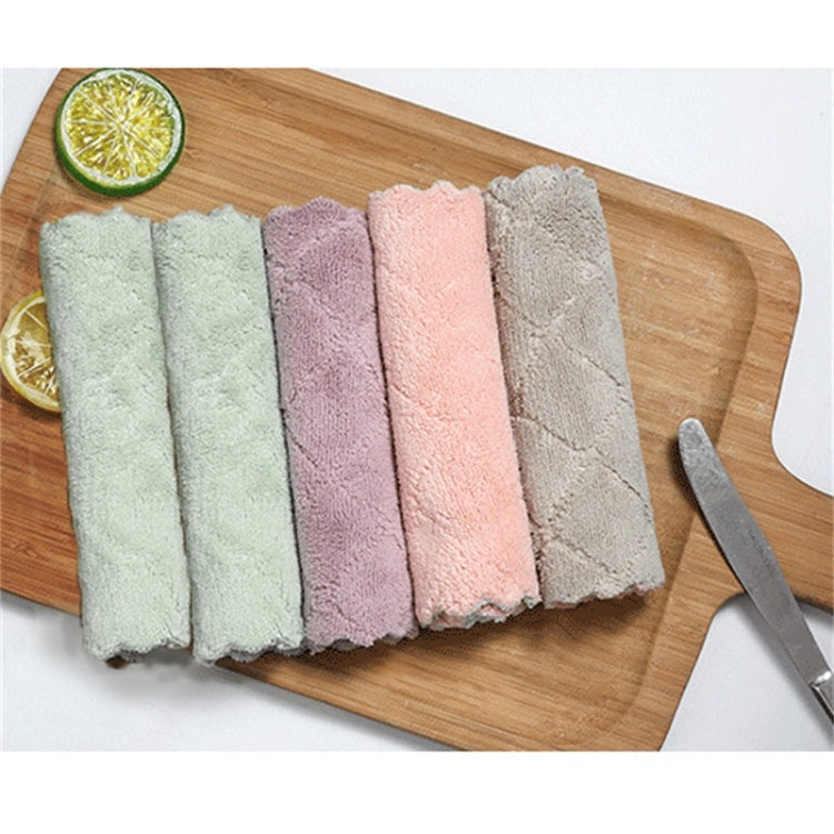 Kitchen Rag Double-sided Water-absorbing Wipe Sink Dish Rag Non Stick Oil Furniture Cleaning Cloth Random Color Delivery, Quantity:5 PCS