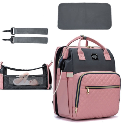 LEQUEEN Portable Folding Crib Sunshade Mommy Backpack(Pink Gray)