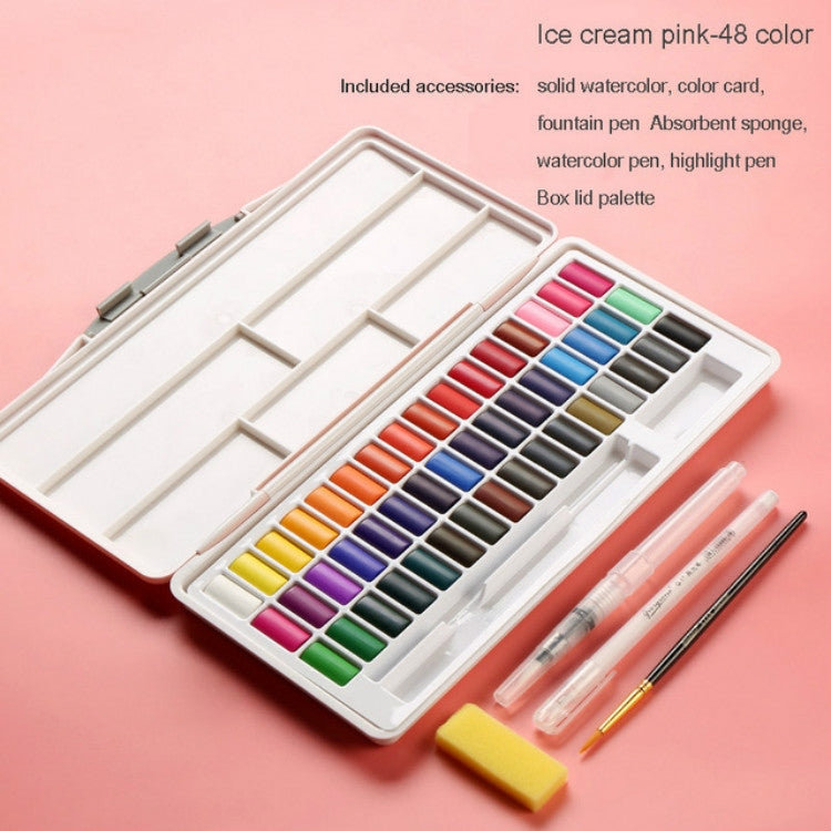 Macaron Watercolor Paint Solid Set Boxed Portable Art Supplies(Pink)