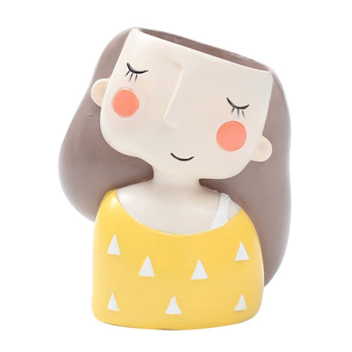 Flower Dessert Shop Home Garden Decoration Planter Pot Cute Girl Heart Flowerpot Desktop Vase Office Accessories Bonsai Ornaments(Innocent Girl)