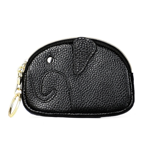 Ladies Head Layer Cowhide Elephant Zipper Coin Purse(Black)