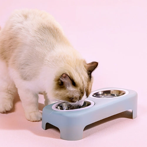 Candy Color Simple Stainless Steel Plastic Dog Cat Bowl Pet Double Bowl, Size:L(Blue)