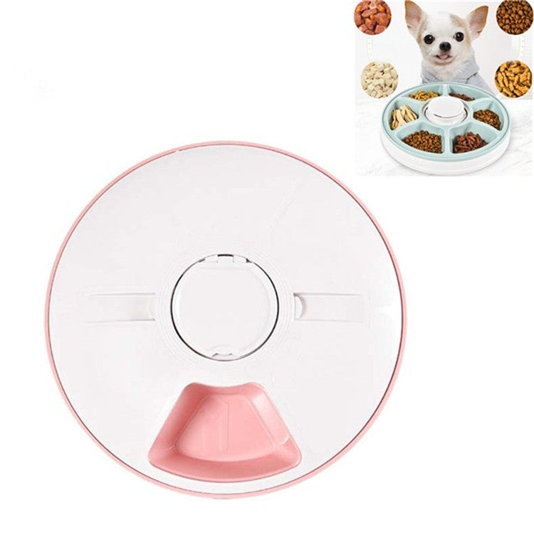 Pet Bowl Six-hole Intelligent Timing Feeder Timing Quantitative Automatic Feeder( Pink)