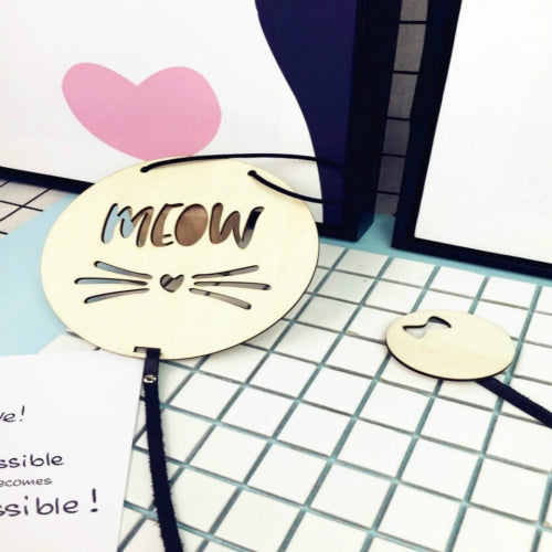 Photo Show Wooden Cowhide Rope Wall Decoration Card Children Room Decoration(Meow)