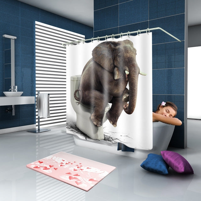Printed Elephant Shower Curtain Bathroom Set Waterproof Shower Curtain, Size:180x200cm