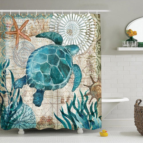 Printed Turtle Shower Curtain Bathroom Set Waterproof Shower Curtain, Size:180x200cm