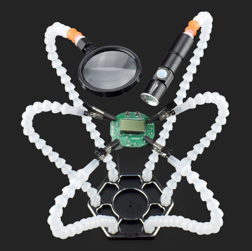 Six-Jaw Aluminum Alloy Welding Station Electronic Product Welding & Maintenance Workbench, SN6SB With Flashlight (White)
