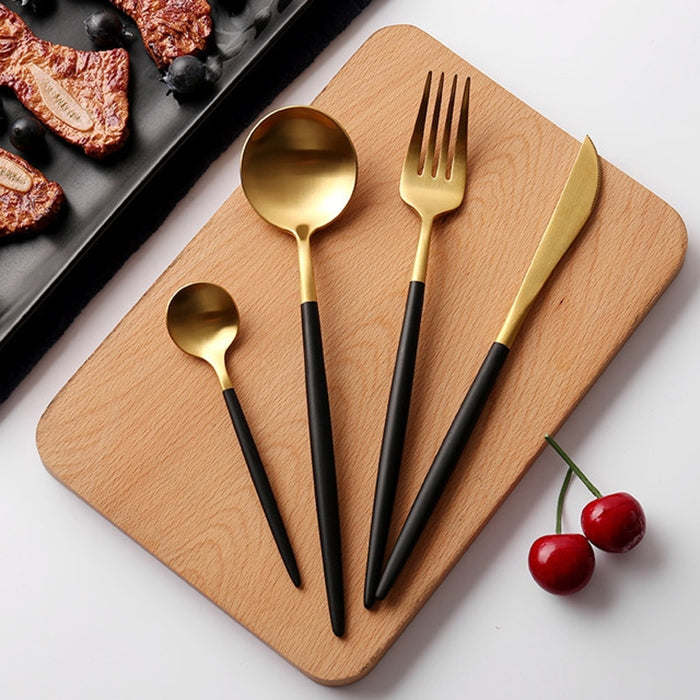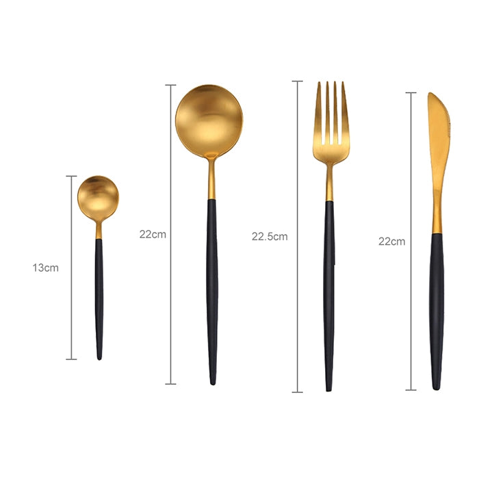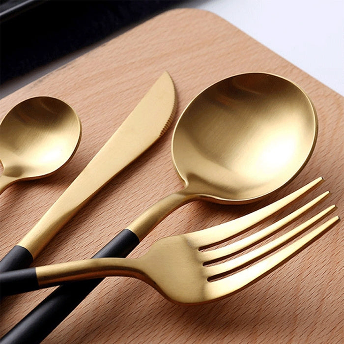 Stainless Steel Cutlery Knives Forks Spoons Western Kitchen Dinnerware Home Party Tableware Set(Black Gold)