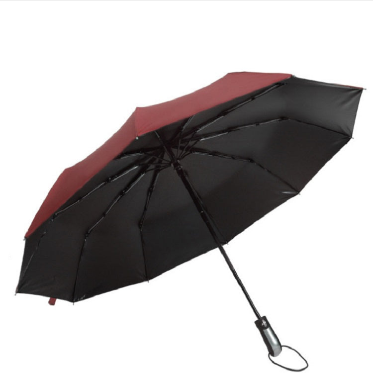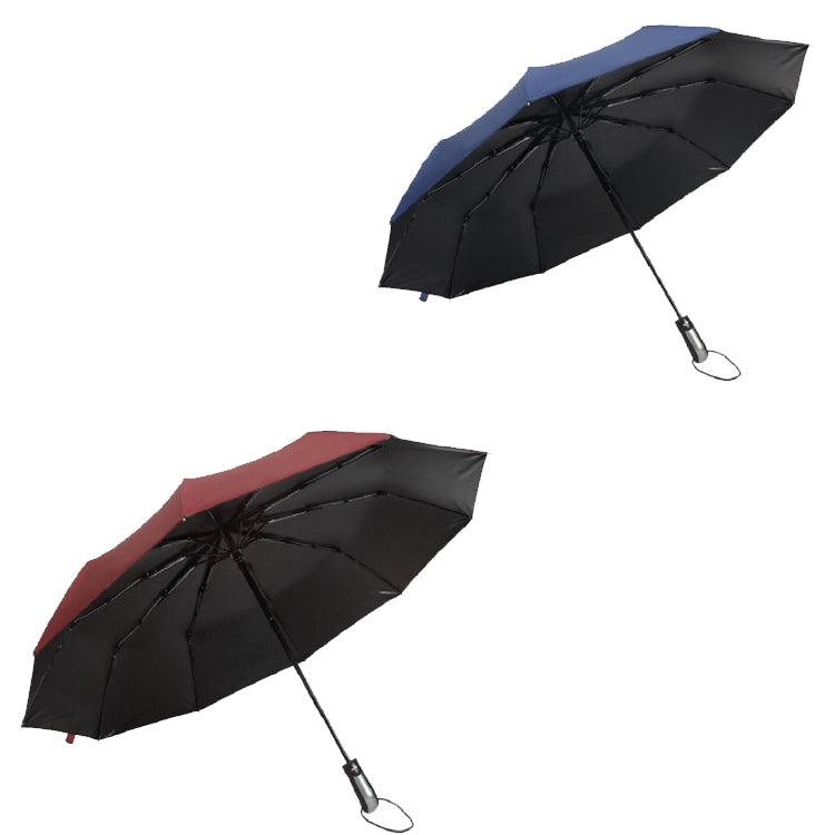 Ten Bone Automatic Vinyl Umbrella Men And Women Business Double Oversized Reinforced Windproof Sunny Umbrella(Wine red)