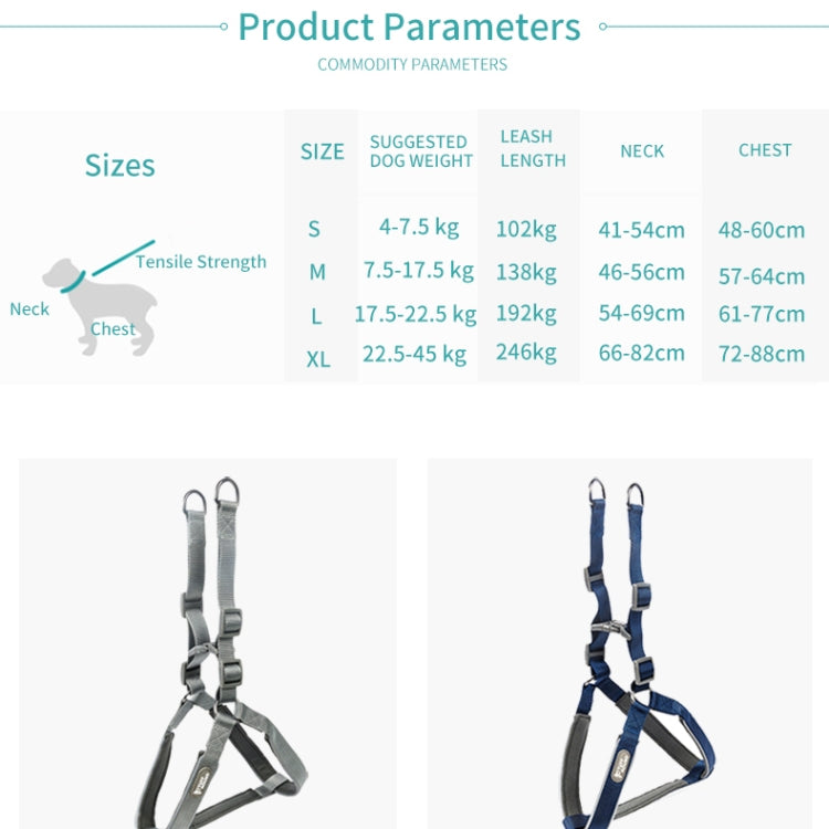 Tuffhound 1606 Adjustable Dog Harness Lead Leash Collar Belt,Size:XL, 2.5x(66-82)+(72-88)cm(Grey)
