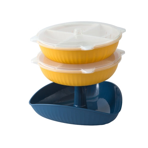 Vegetable Washing Draining Basket Split-Grid Rotating Multi-Layer Hot Pot Platter Tray+2 Drain Baskets(Blue)