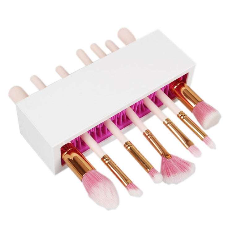 VELEKA Silicone Makeup Brush Cosmetic Storage Rack(White+Rose Red)(White+Rose Red)