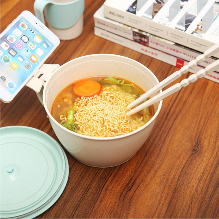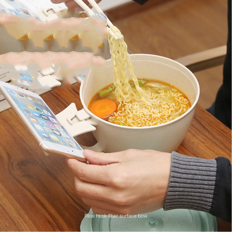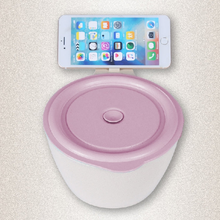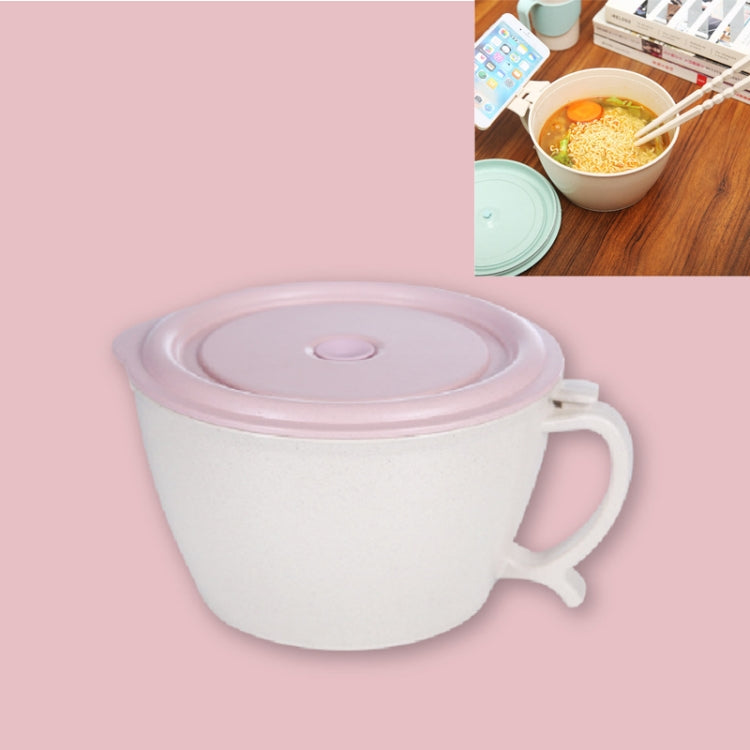 Wheat Fiber Instant Noodle Bowl Creative and Convenient Sealed Lunch Box with Mobile Phone Holder(Pink)
