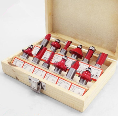 Woodworking Milling Cutter Set Trimming Machine Head Electric Wood Milling Engraving Machine Cutter, Style:Red 1/2 Handle 12PCS
