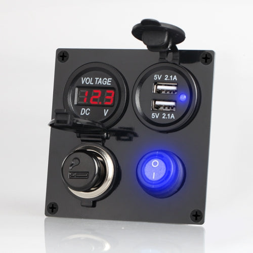 12 / 24V Car Yacht Modified Dual USB 4 Hole Switch Panel(Red Light)