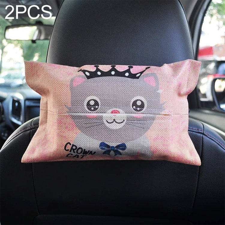 2 PCS Cartoon Cloth Car Seat Back Hanging Storage Tissue Case Box Container Towel Napkin Papers Bag Holder Box Case(Cat)