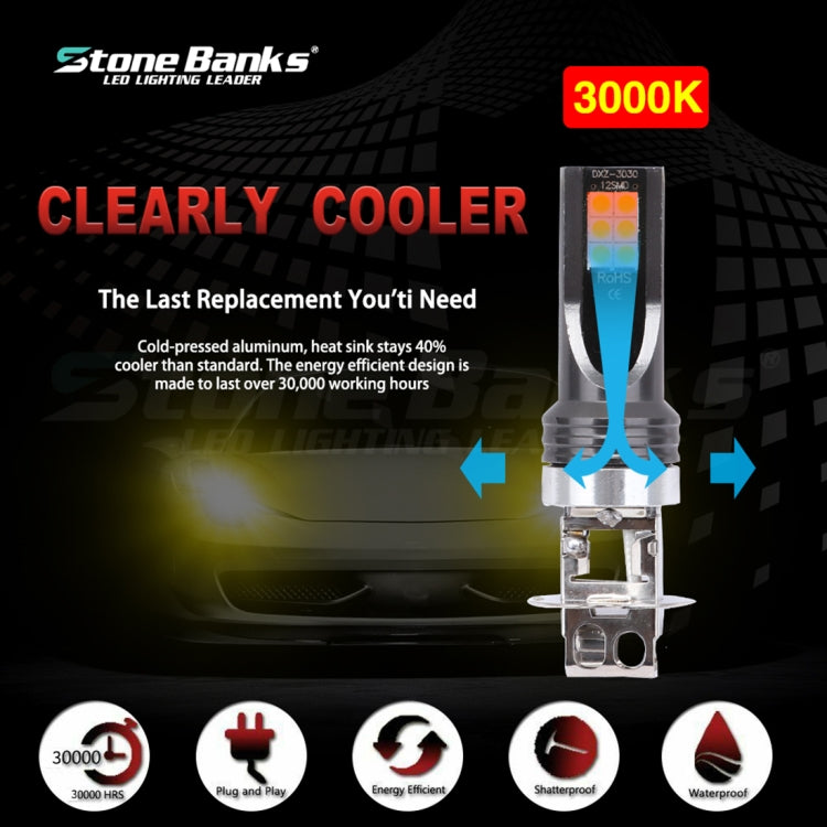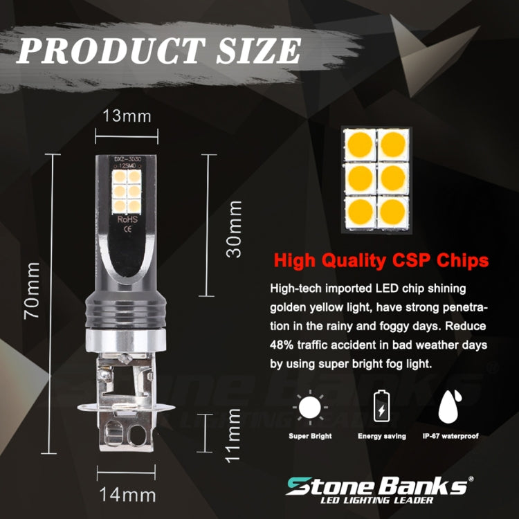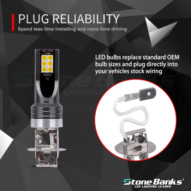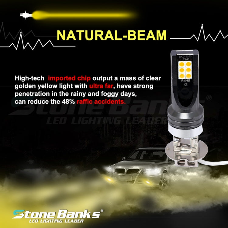 2 PCS H3 DC12V-24V / 12W / 3000K / 800LM 12LEDs SMD-3030 Car LED Fog Light (Yellow Light)