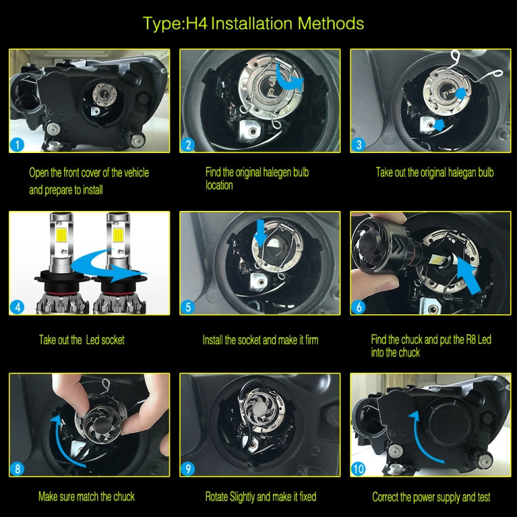 2 PCS H4 27W 3000LM 6000K Pure White Hi/Lo Beams COB Chips LED Headlight Bulbs Conversion Kit, DC 9-36V