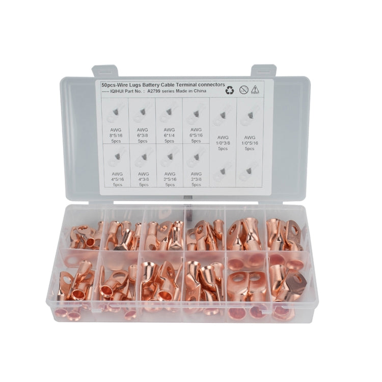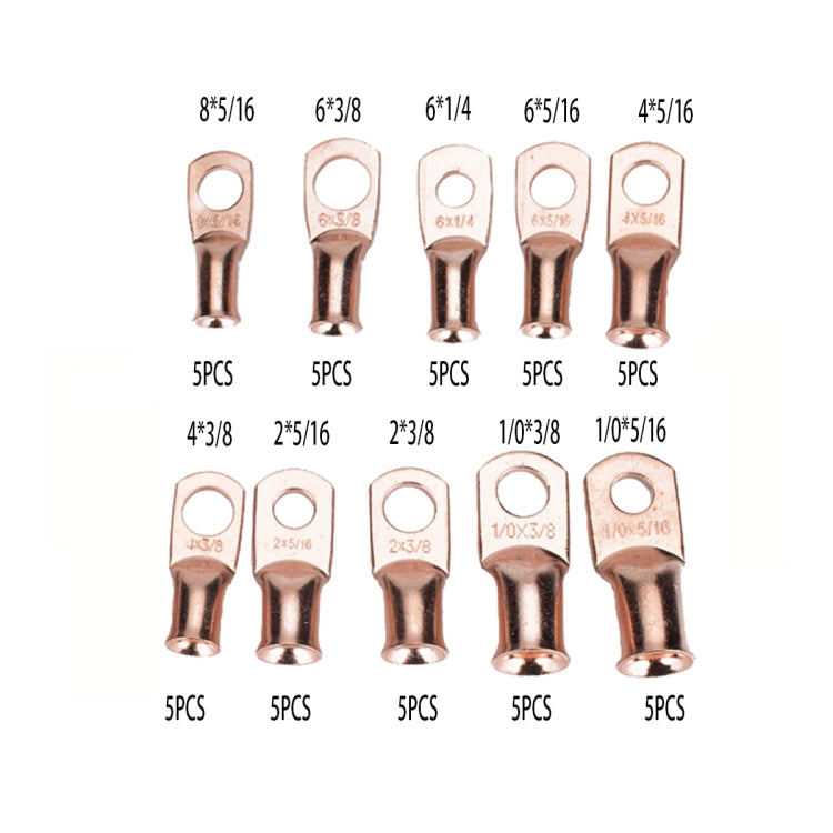 50 PCS Wire Terminals Connector Cable Lugs AWG T2 Copper Heavy-duty Cold-pressed Battery Cable Ends