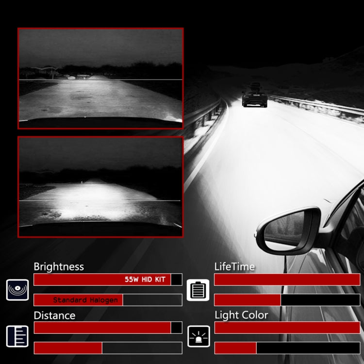 55W 3200LM H1 6000K HID Xenon Bulbs Light Conversion Kit with High Intensity Discharge Slim Ballast, White