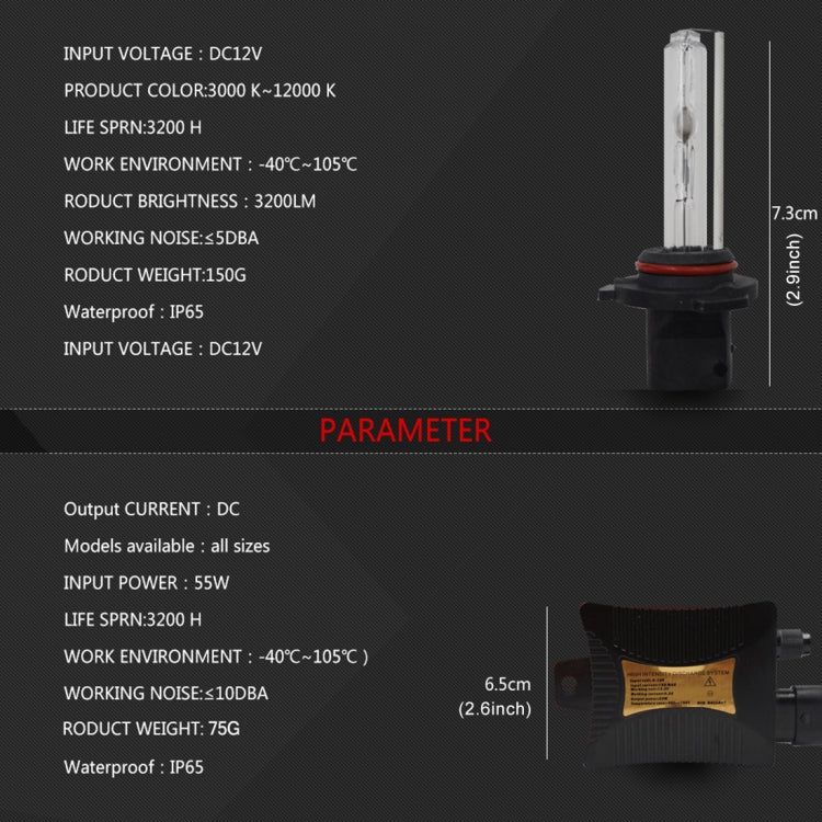 55W 9005/H10/HB3 6000K HID Xenon Light Conversion Kit with High Intensity Discharge Slim Ballast, White