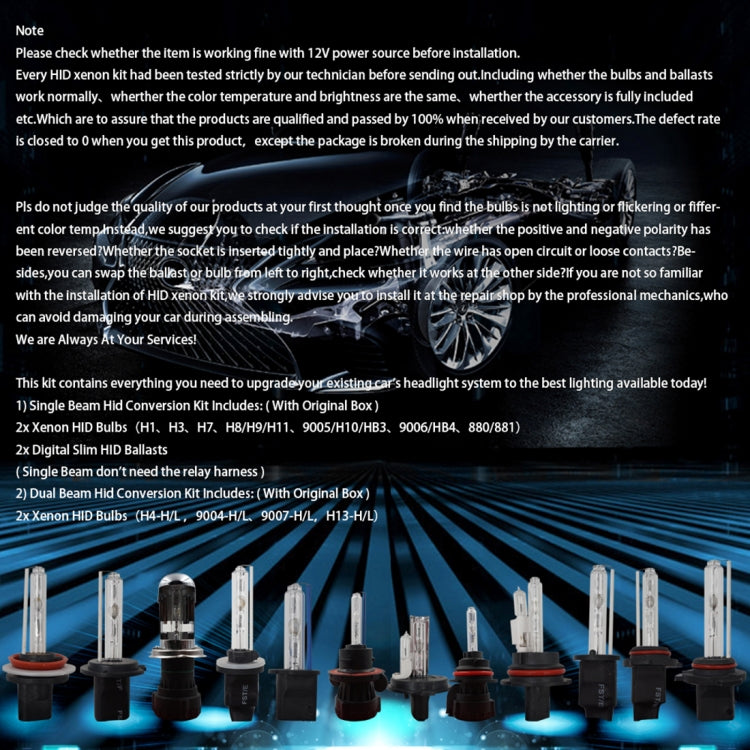 55W H7 6000K HID Xenon Light Conversion Kit with Slim Ballast High Intensity Discharge Lamp, White