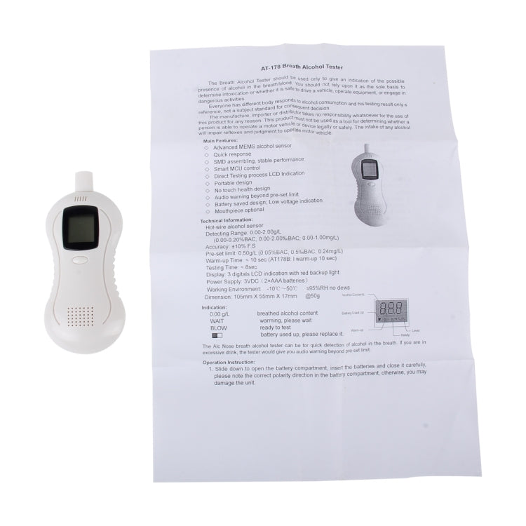 AT-178 Professional Digital Breathalyzer LCD Police Digital Breath Alcohol Tester