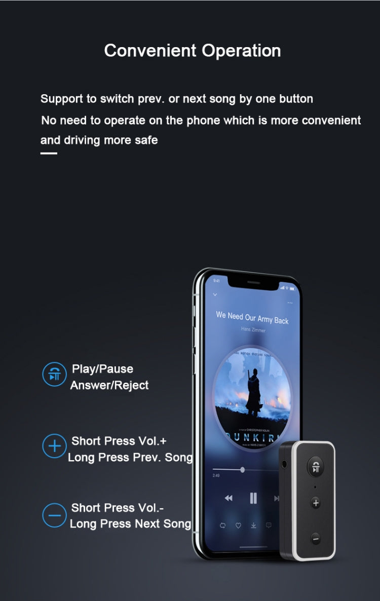 Bluetooth 5.0 Audio Receiver 3.5mm AUX Car Speaker Headphones Universal One to Two Talk