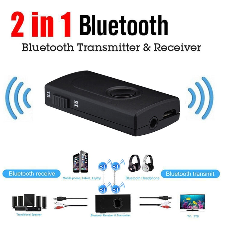 BT500 2 in 1 Bluetooth Audio Transmitter Receiver Adapter Portable Audio Player(Black)