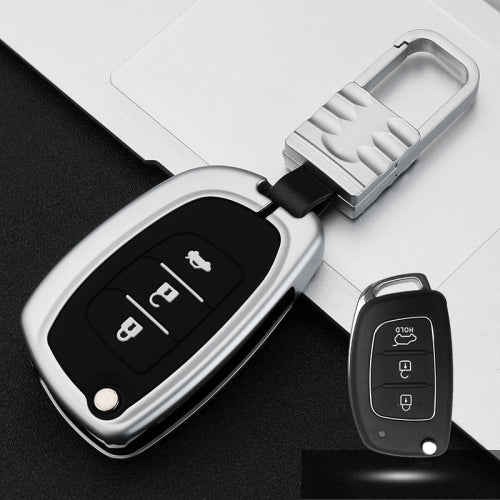 Car Luminous All-inclusive Zinc Alloy Key Protective Case Key Shell for Hyundai C Style Folding 3-button (Silver)
