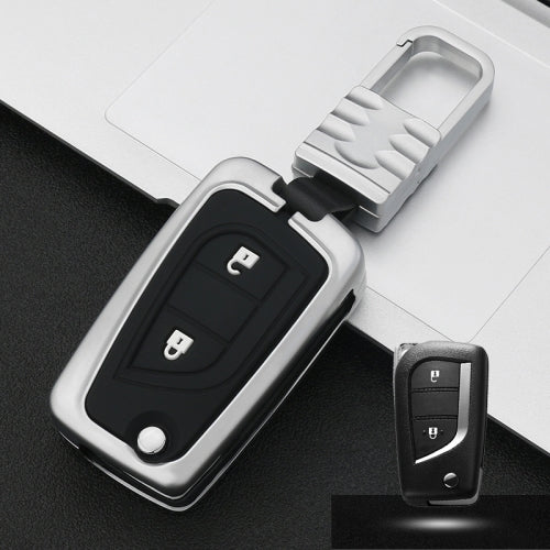 Car Luminous All-inclusive Zinc Alloy Key Protective Case Key Shell for Toyota B Style Folding 2-button (Silver)