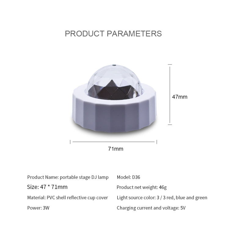 D36 3W DC 5V USB Charging Car Portable DJ Light Sound Activated Atmosphere Light Star Music Light Lamp(White)
