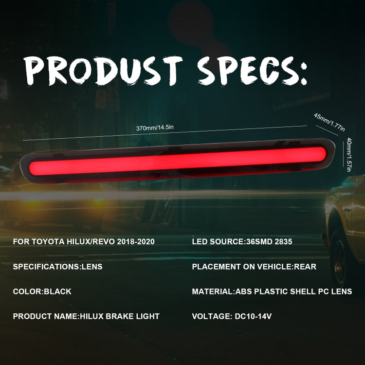 DC10-14V 36LEDs SMD-2835 Car Long High Position Brake Light for Toyota Hilux Revo 2018-2020(Black)