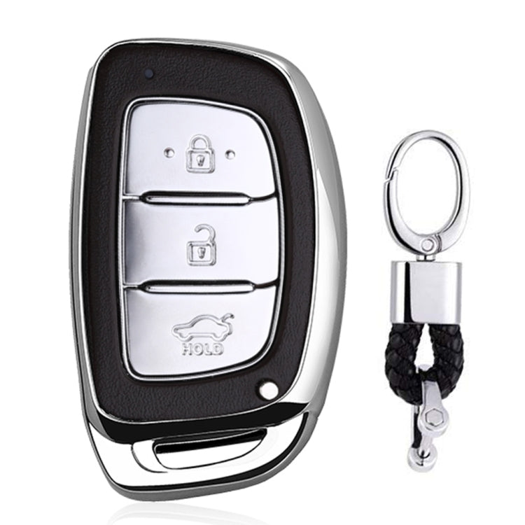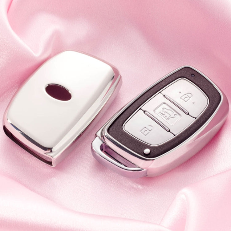 Electroplating TPU Single-shell Car Key Case with Key Ring for HYUNDAI MISTRA / Elantra / New SantaFe / Elantra / Celesta / Tucson / IX35 (Silver)
