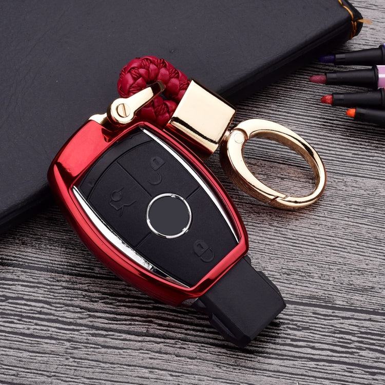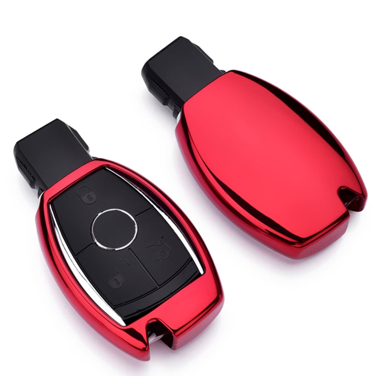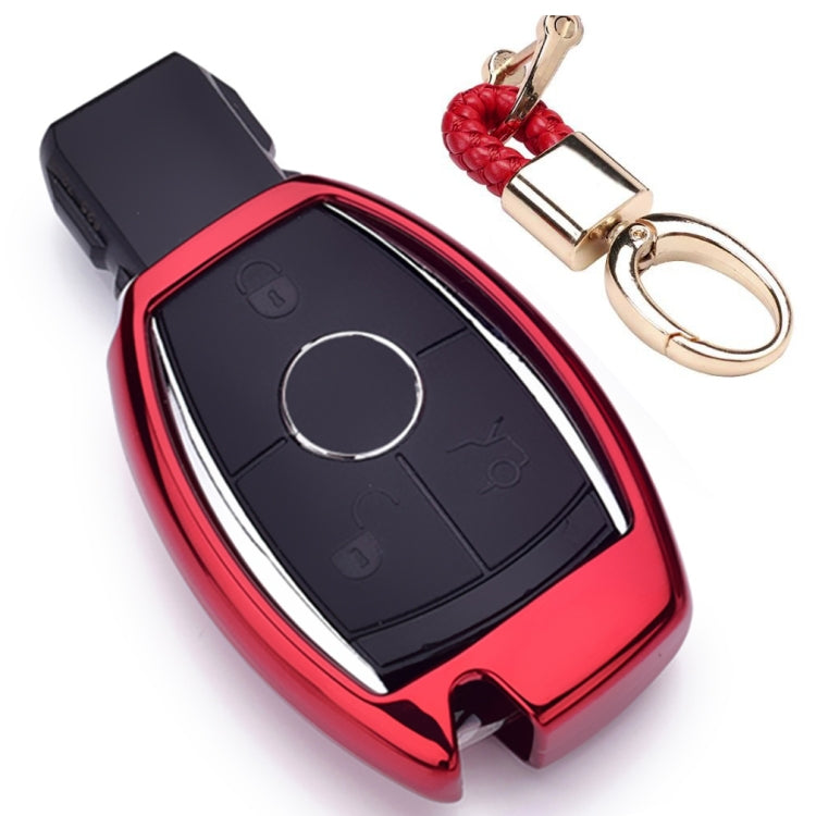 Electroplating TPU Single-shell Car Key Case with Key Ring for Mercedes-Benz C (Red)