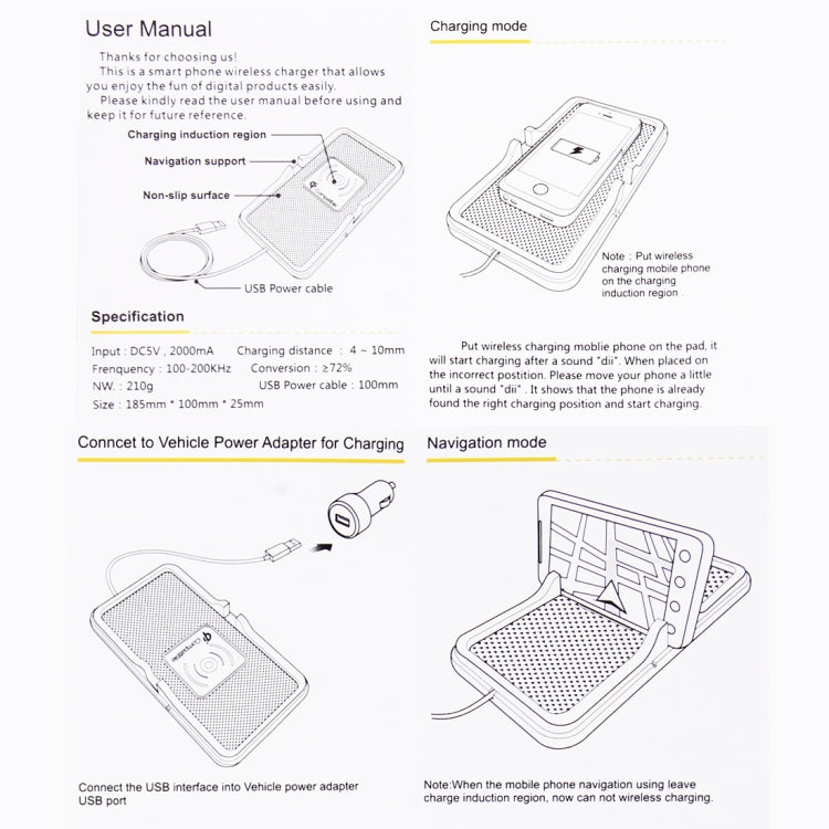 Home Car DC 5V/2A 5W Fast Charging Qi Standard Wireless Charger Pad, For iPhone, Galaxy, Huawei, Xiaomi, LG, HTC and Other QI Standard Smart Phones