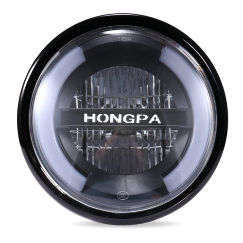 HONGPA Motorcycle Retro Headlights Modified Parts LED General Metal Headlights(Bright Black)
